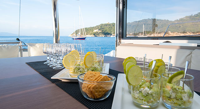 Le rituel de l'apéritif est rigoureusement observé avant chaque repas : que seraient les vacances sans ce moment de partage ? Accompagnés d'amuse-bouche, de crackers ou de verrines, les cocktails, ti-punch ou rosé bien frais sont parfaits pour se mettre en appétit.