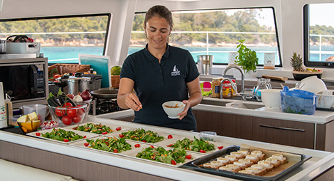 Un marin cuisinier diplômé pour aider aux manœuvres, mais surtout vous régaler de sa cuisine fraîche et familiale et de sa convivialité.